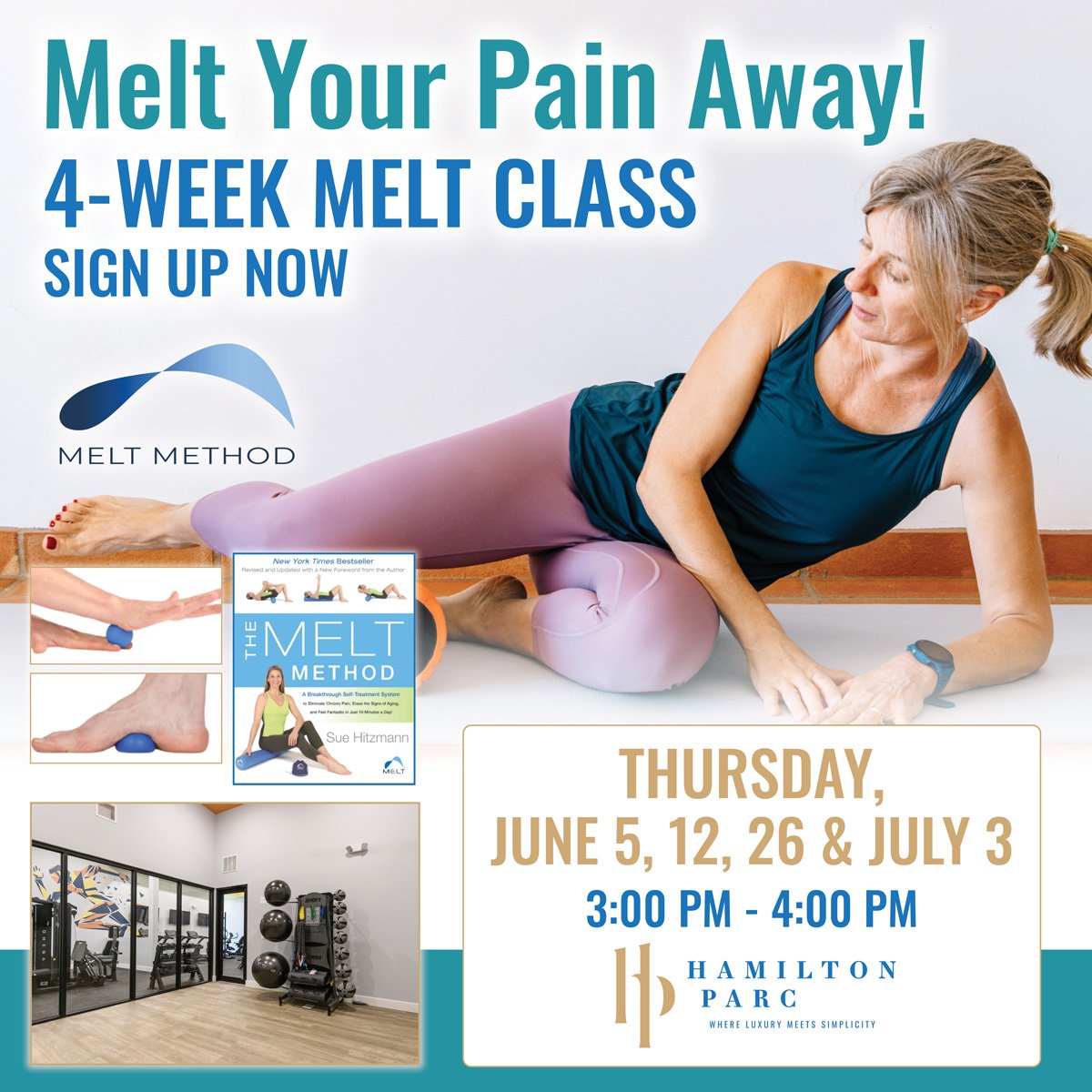 Take charge of your well-being with our 4-week MELT Workshop, exclusively for adults 55 and over! Join Kerry Kaufman, Certified MELT instructor and discover how gentle, self-treatment techniques can erase pain and tension in your hands, feet, neck, and low back. Learn how to rehydrate your connective tissue, reduce inflammation, improve alignment, and feel fantastic—all using simple tools like soft rollers and therapy balls.